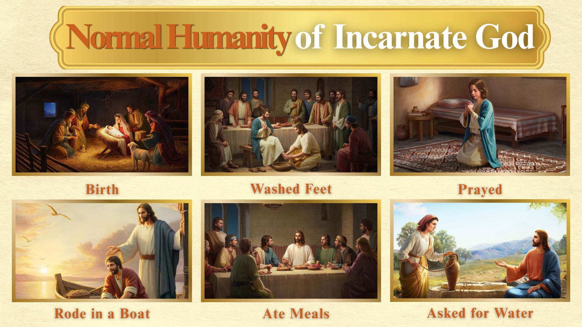 Session 5 5-道成肉身图片 什么是道成肉身 | What is Incarnation 道成肉身的意义 | Significance of Incarnation 正常人性 | Normal Humanity 完全神性 | Complete Divinity 怎么认出道成肉身的神 | How to Recognize God Incarnate 真假基督 | True and False Christ